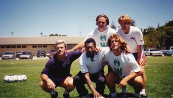 In 1994 Pele needed a coach & clinic to film a pre-1994 Brazil vs USA 1/4 Final World Cup preview at Stanford Stadium. He chose the Ireland family and their youth club players as his guests. From L-R: Top: Ross, Simon Ireland: Bottom: Victor, Pele, Gary Ireland